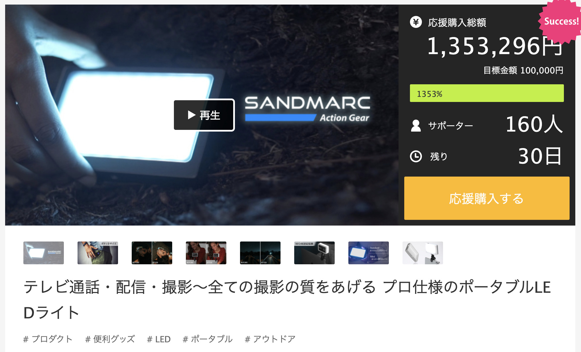 プロジェクトを重ねるごとにしっかり支援額が上がってきていますので、今後もますますご活躍に期待したいと思います。