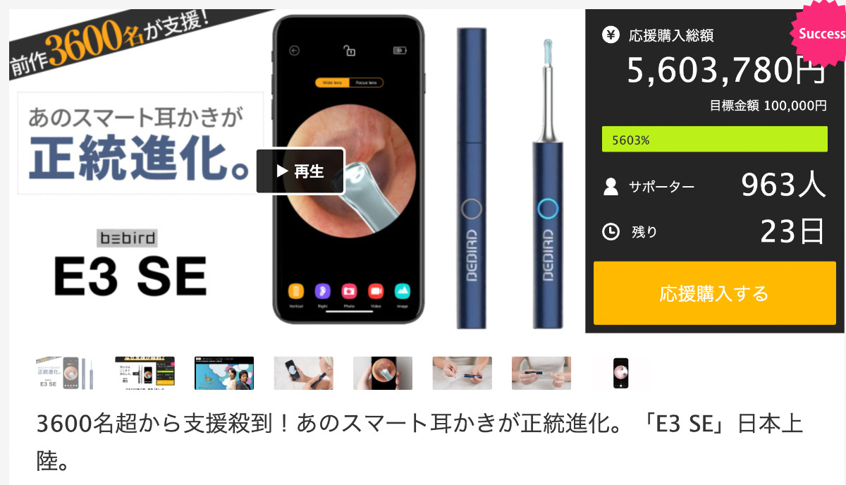 こちらは前回のプロジェクトで1600万円売り上げた耳かきの第二弾「bebird E3 SE」です。