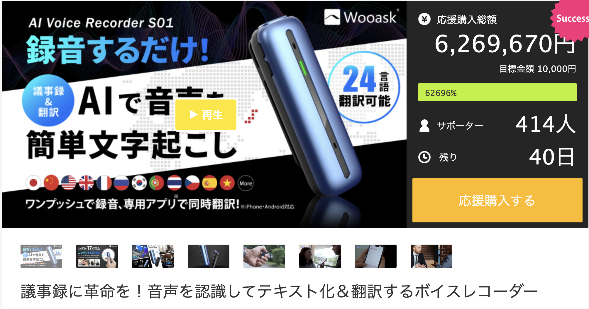 本日はクライエント様のプロジェクトをご紹介します^^ https://www.makuake.com/project/wooask_ai_voice_recorder/