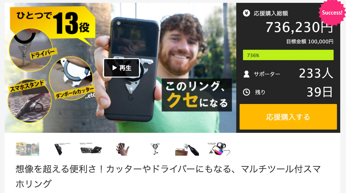 Makuakeのメインユーザーである30〜50代男性をターゲットにした、かっこいいアイテムなのでMakuake自体の集客力を上手く利用して個数を販売されています。