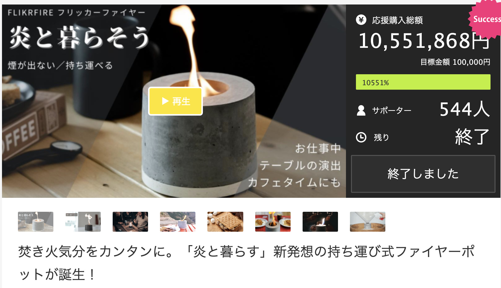 クラファン初めての案件で1000万円突破とは素晴らしいです。