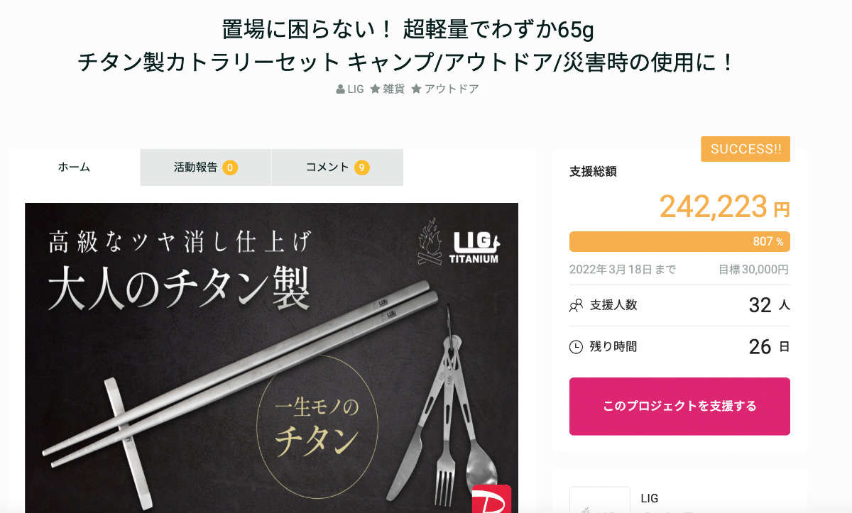 前回はMakuakeでチタン製の飯盒でプロジェクトを実施されて今回2回目です。