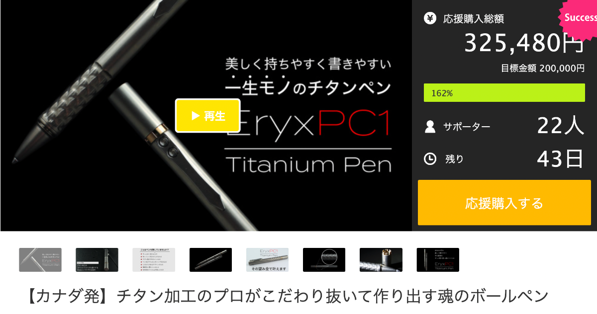 こちらはカナダ発のチタン製ペン「Eryx PC1 Titanium Pen」です。
