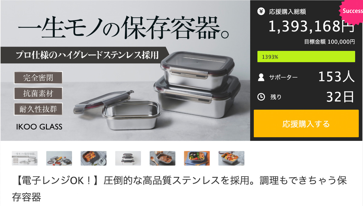 過去にレンジで使えるステンレス容器がMakuakeで2200万円超え、第2段が1500万円超えでヒットしている案件がありました。