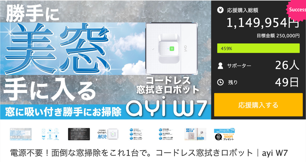こちらは自動で窓拭きをしてくれるコードレス窓拭きロボットayi W7です。