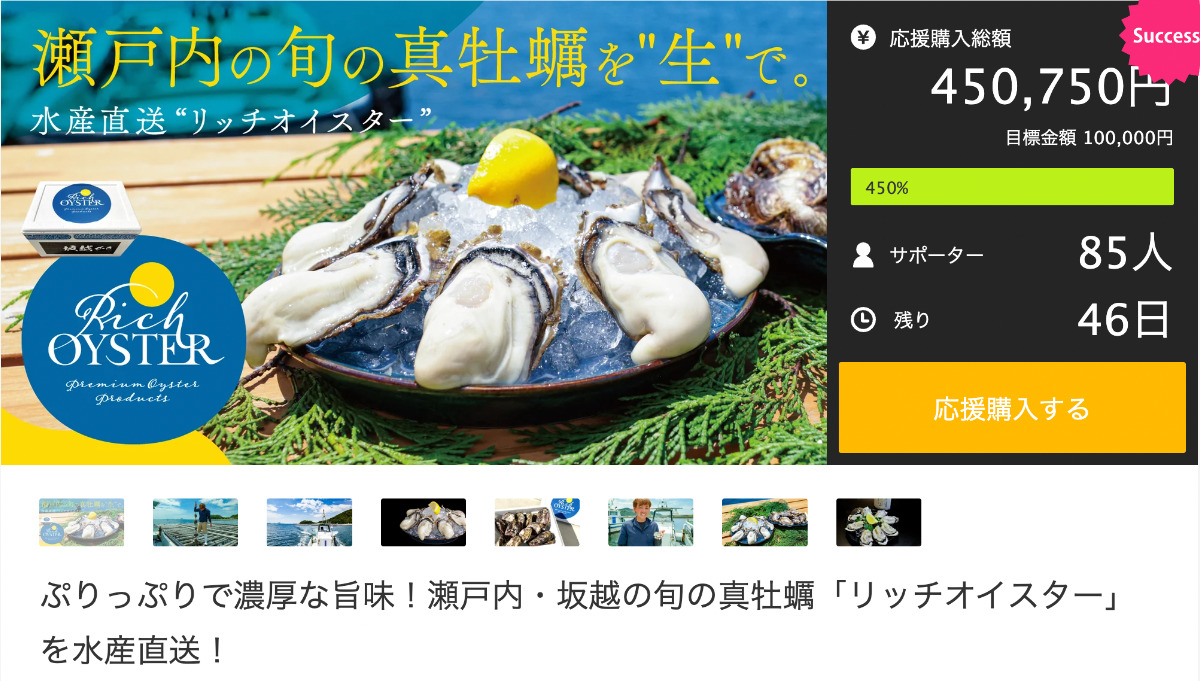 ぷりっぷりで濃厚な旨味!瀬戸内・坂越の旬の真牡蠣「リッチオイスター」を水産直送! https://www.makuake.com/project/rich-oyster/