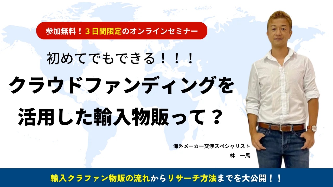 今回のセミナーに参加していただくことにより輸入クラウドファンディング物販の基礎がわかります。