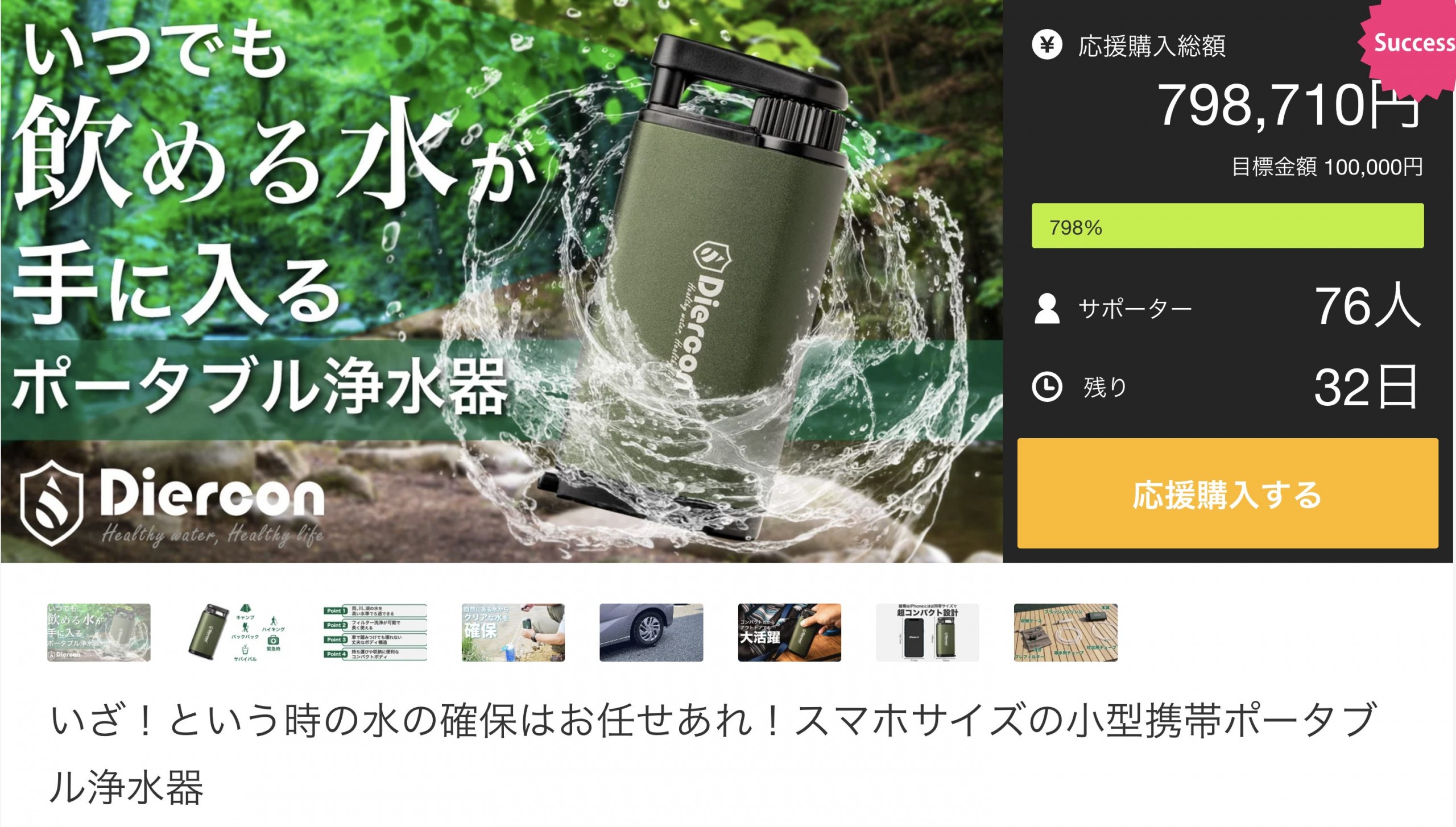 災害時やアウトドア活動時で役立つ、スマホサイズの小型携帯ポータブル浄水器「Diercon」です。