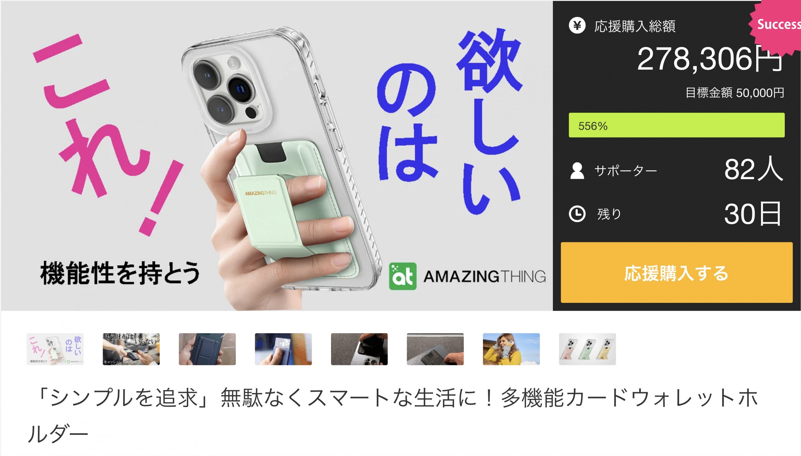 こちらの実行者様はスマホ関連アクセサリーのメーカーと繋がってどんどん商品を紹介してもらって複数のプロジェクトを準備中です。