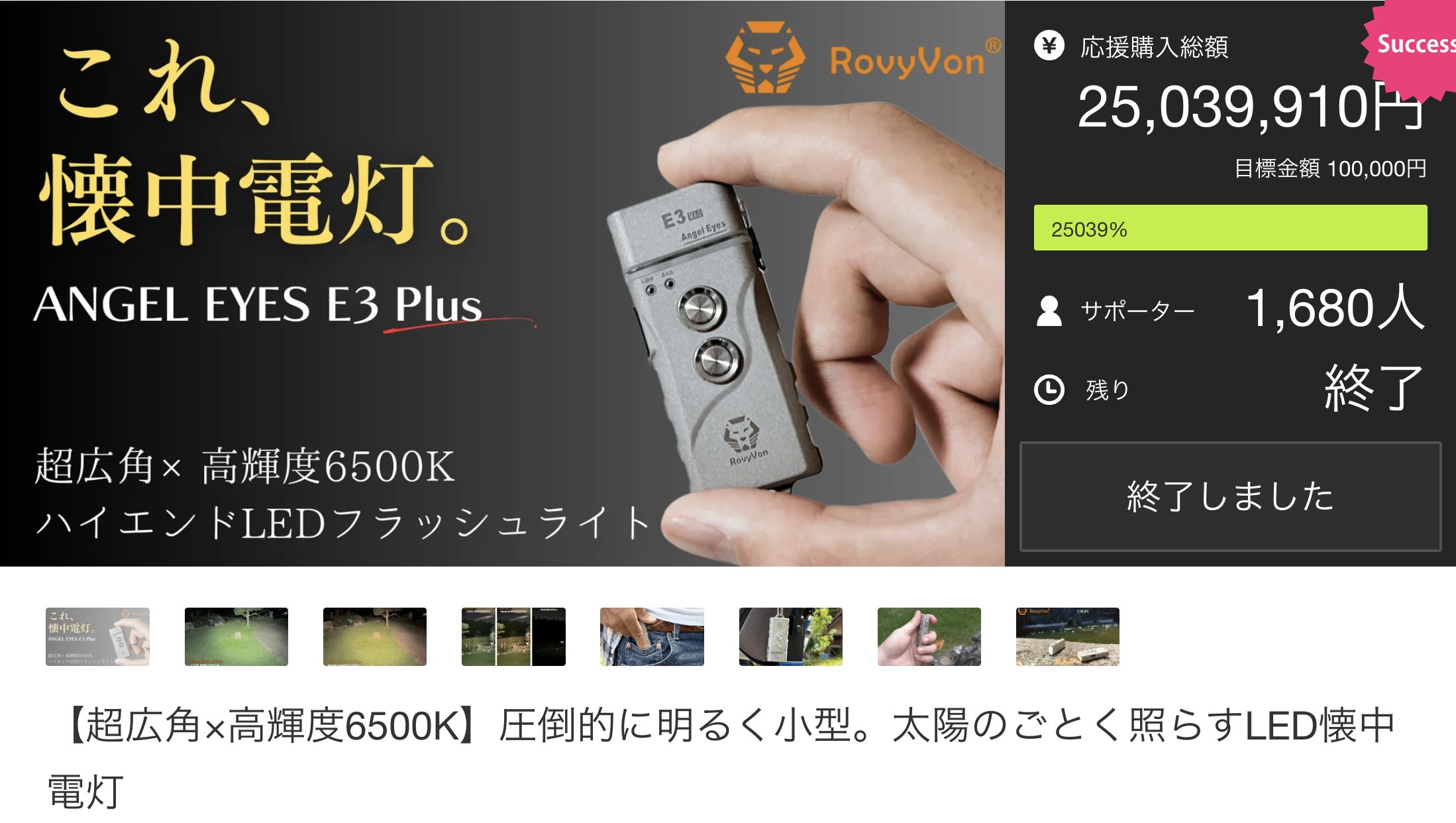 懐中電灯で2500万円というのはMakuakeでも懐中電灯の歴代最高売上を達成されています。