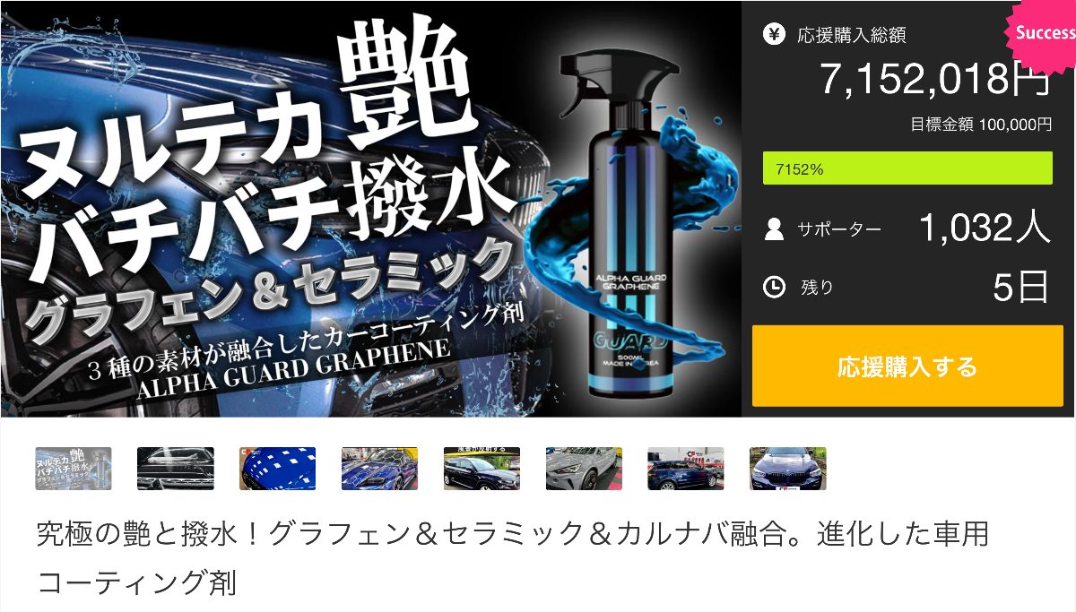 車のコーティング剤は様々プロジェクトが出ていますが、圧倒的な実績を作っています。