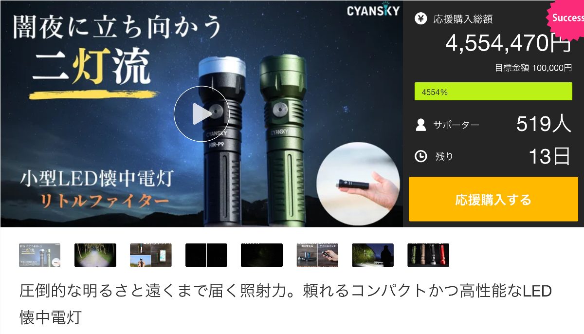 懐中電灯のプロジェクトがたくさん出ている中で、これだけプロジェクトを伸ばされており、非常に素晴らしいです。