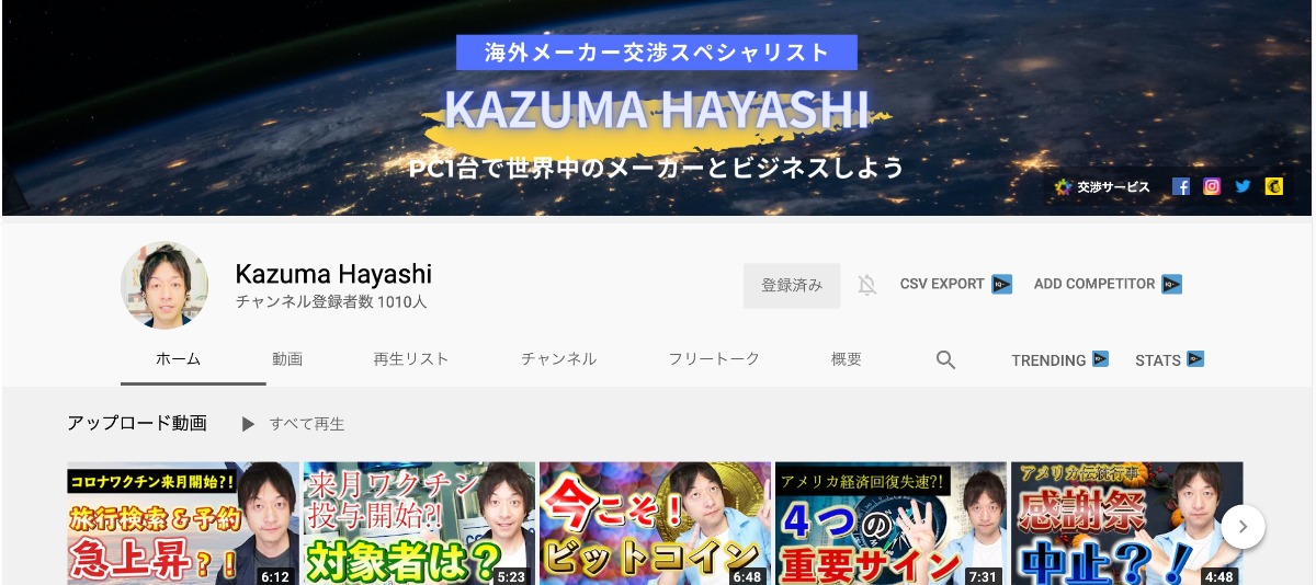 林一馬のYouTubeチャンネル