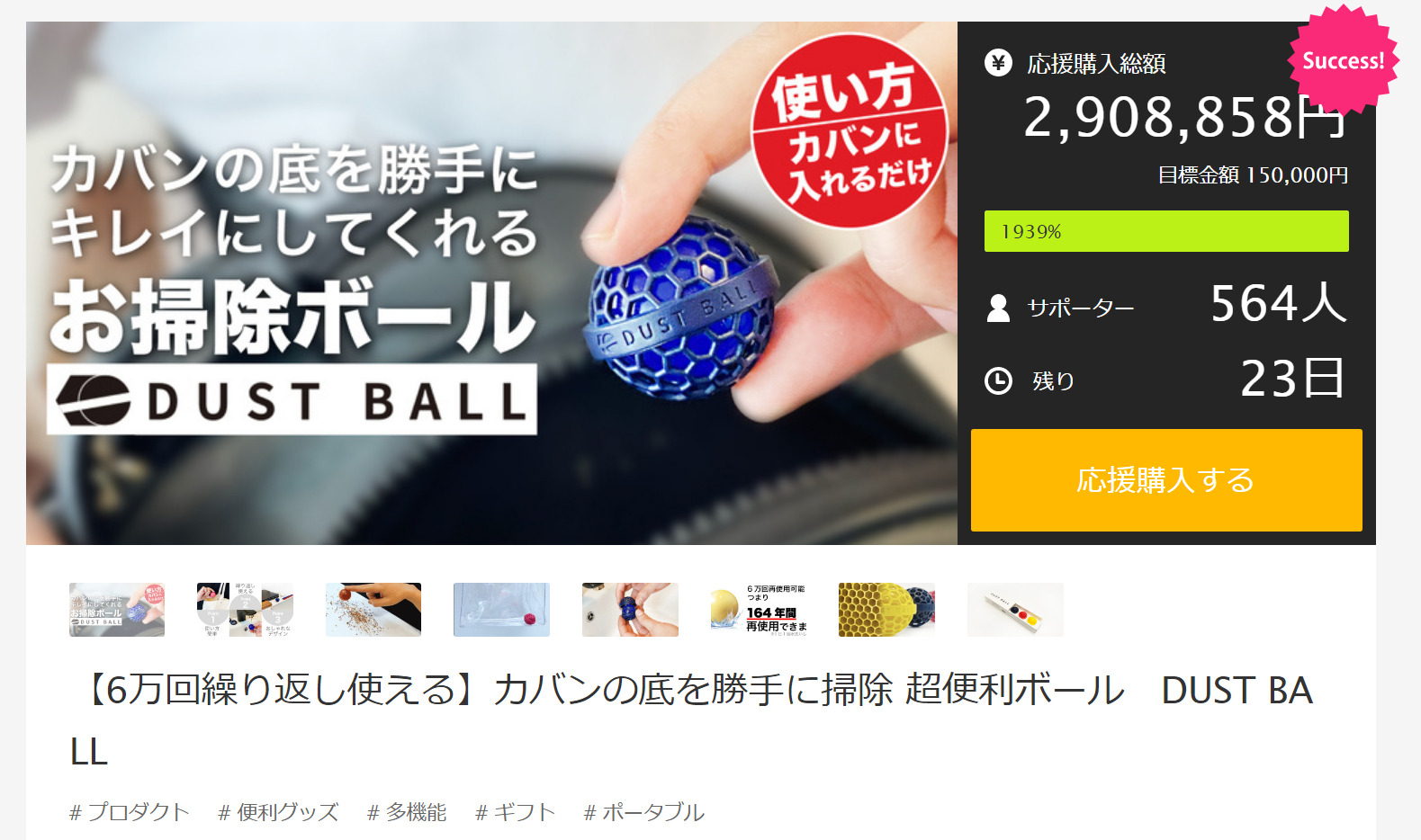 物販経験がない実行者さんの初めてのプロジェクトですが、とても好調にプロジェクトが推移しています。