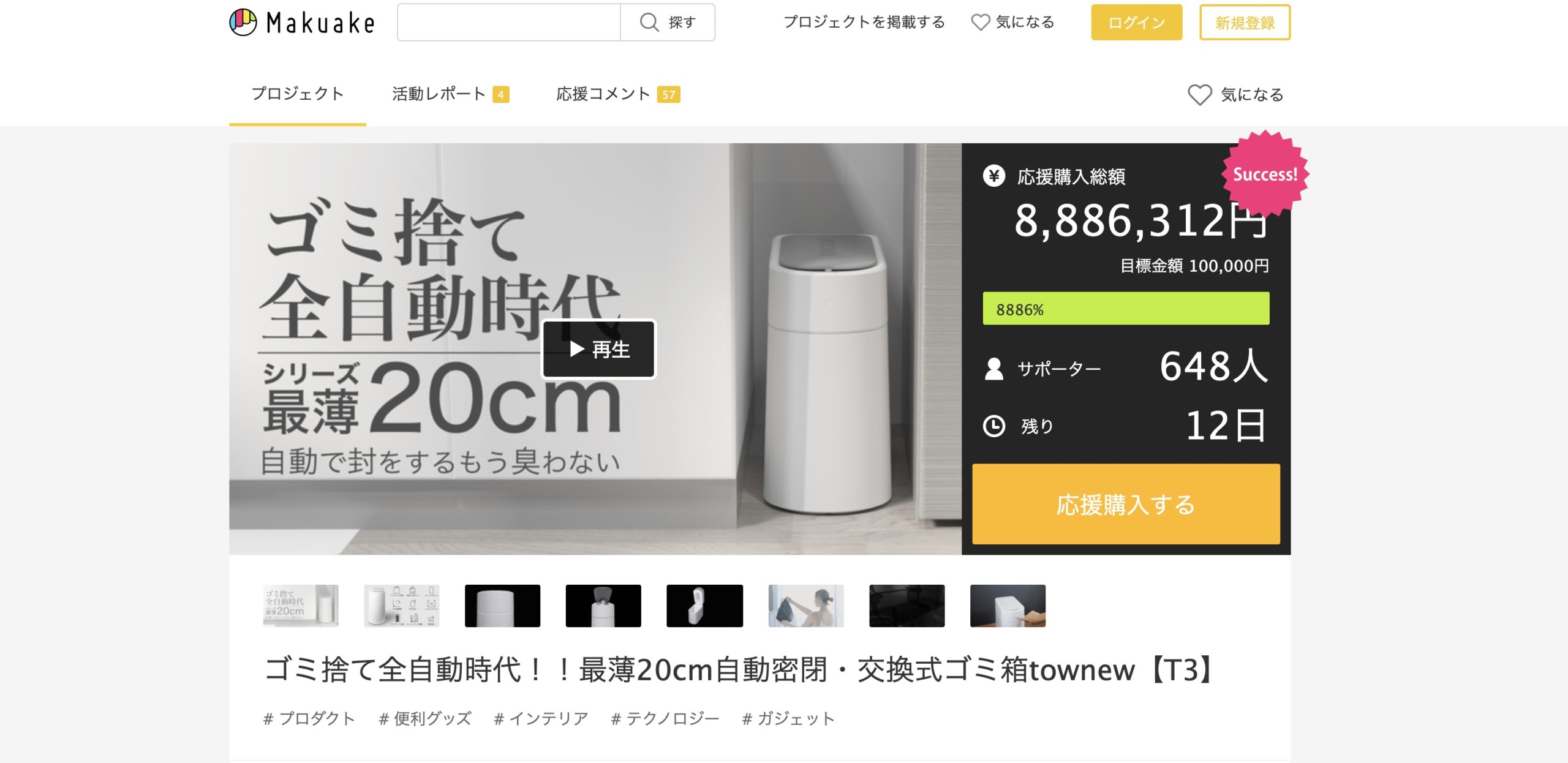 そして別の商品でプロジェクトをスタートさせその後ゴミ箱のプロジェクトをスタートできました。